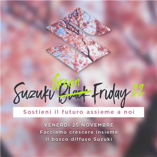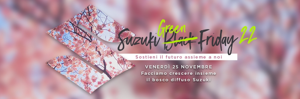 Per incentivare gli acquisti online, il 25 novembre sarà possibile utilizzare il codice sconto del 10%: SUZUKIGREENFRIDAY.