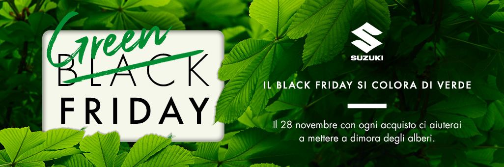 - #SuzukiGreenFriday: Suzuki celebra in maniera originale il Black Friday e devolve lo 0,5% del fatturato giornaliero a favore di un progetto legato alla sostenibilità.