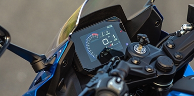 La GSX-8R è equipaggiata con uno schermo TFT LCD a colori da 5 pollici. Il display ad alta risoluzione fornisce informazioni chiare e facilmente leggibili sullo stato della moto e sulle impostazioni dei vari sistemi. Oltre alla velocità, il tachimetro mostra un indicatore luminoso programmabile nel numero di giri che lampeggia quando il motore raggiunge un regime prestabilito. Lo schermo mostra inoltre avvisi e avvertimenti a comparsa.