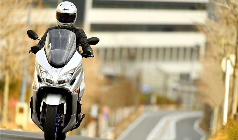 La posizione di guida del BURGMAN 400 è eretta e permette di portare le gambe del pilota più indietro, creando una posizione di guida più eretta, che risulta comoda e allo stesso tempo sportiva.